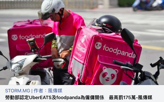 話說這禮拜勞動界最大的消息應該就是這則了吧:勞動部認定外送業者跟外送員的勞資關係應屬於僱傭而非承攬,並將依勞基法對業者進行裁罰。