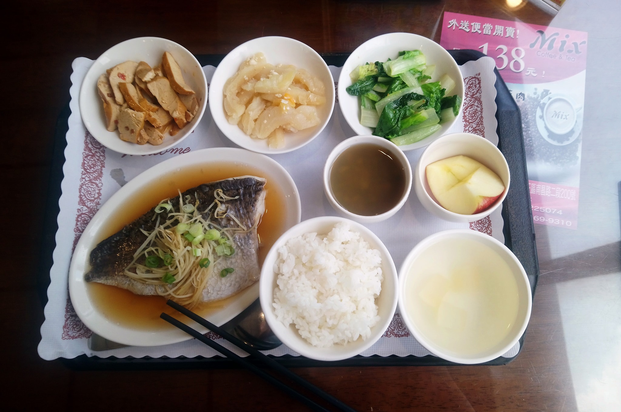 前兩次造訪選擇的都是一般簡餐,除了主菜之外,還會附上小菜、湯品、甜點、水果,以及附餐飲料。